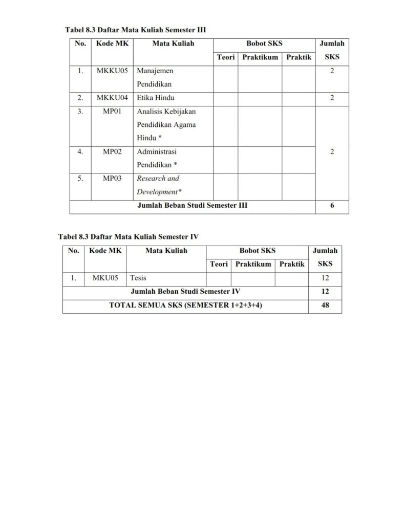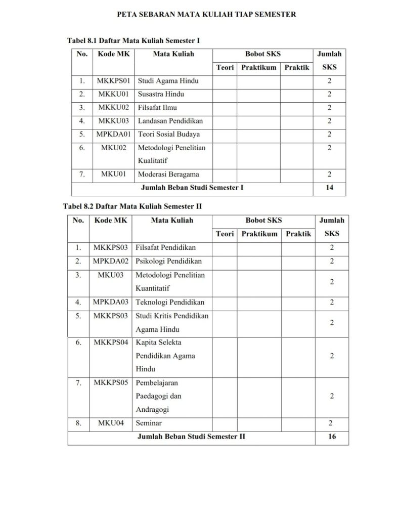 Sebaran Mata Kuliah Program Studi Magister Dharma Acarya